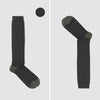 Il kit è composto da: 2 paia calze lunghe di colore nero unito con tacco e punta in colore verde melanges. Fatte a mano in italia in Lana di alta qualità;