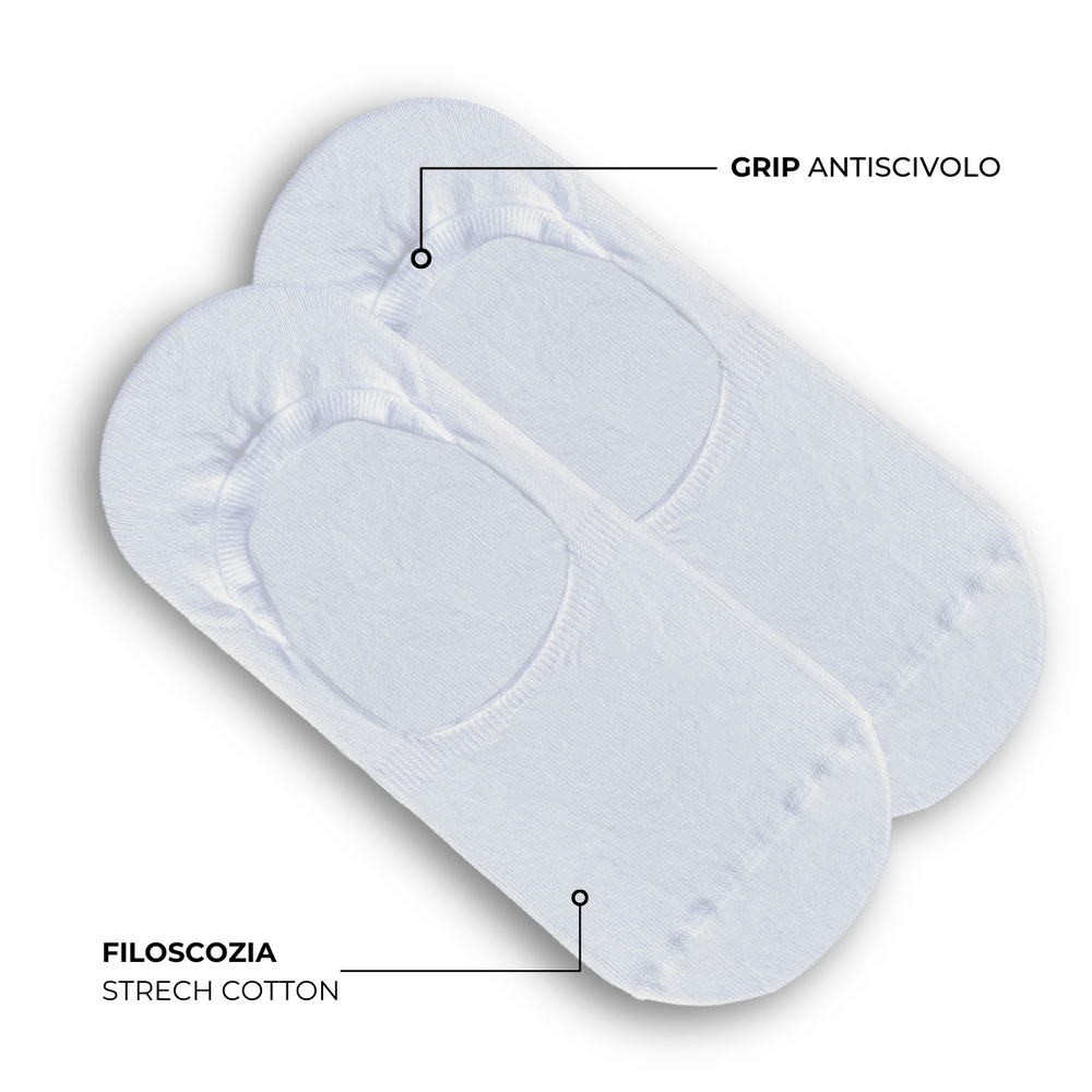 La soletta in cotone Filoscozia® elasticizzato ha una scollatura ampia che lo rende del tutto invisibile, il particolare grip antiscivolo